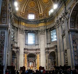 The Pazzi Chapel in Florence by Filippo Brunelleschi (1429) has plain columns (outside) but cable-fluted pilasters inside and out. A similar mixture is seen in St Peter's Basilica in Rome, where the giant order columns on the facade are plain, but the main pilasters in the interior are cable-fluted, and smaller columns, for example framing the doors, are fluted.