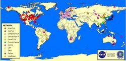 FluxNet is a global network of micrometeorological tower sites that use eddy covariance methods to measure the exchanges of carbon dioxide, water vapor, and energy between the biosphere and atmosphere. Fluxnet is a global 'network of regional networks' that serves to provide an infrastructure to compile, archive and distribute data for the scientific community. It works to ensure that different flux networks are calibrated to facilitate comparison between sites, and it provides a forum for the distribution of knowledge and data between scientists.[1]