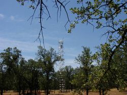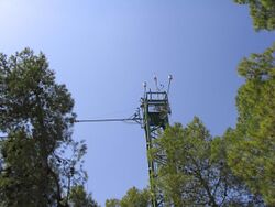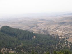 The state of Israel is afforesting the Negev desert, which accounts for 60% of the country's land mass but remains sparsely populated.[7] The Yatir Forest is located on the southern slopes of Mount Hebron, on the edge of the Negev Desert. Covering an area of 30,000 dunams (30 square kilometers), it is the largest planted forest in Israel.[8] It is named after the ancient Levite city within its territory, Yatir, as written in the Torah[9][10] The Yatir forest is a tower site of NASAs research project FluxNet. There is a multitude of modern Israeli scientific research conducted in the Yatir Forest to meet the challenge of climate change, which may result in rapid plant loss and desertification in certain circumstances.[11][12] Studies of the Weizmann Institute of Science, in collaboration with the Desert Research Institute at Sde Boker, have shown that the trees function as a trap for carbon in the air.[13][14] Shade provided by trees planted in the desert also reduces evaporation of the sparse rainfall.[13] Arava Institute for Environmental Studies conducts research at Yatir forest that focuses on crops such as dates and grapes grown in the vicinity of Yatir forest.[15][16] The research is part of a project aimed at introducing new crops into arid and saline zones.[17]