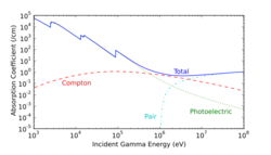 In a typical graded-Z shield, the high-Z layer effectively scatters protons and electrons. It also absorbs gamma rays, which produces X-ray fluorescence. Each subsequent layer absorbs the X-ray fluorescence of the previous material, eventually reducing the energy to a suitable level. Each decrease in energy produces Bremsstrahlung and Auger electrons, which are below the detector's energy threshold. Some designs also include an outer layer of aluminium, which may simply be the skin of the satellite. The effectiveness of a material as a biological shield is related to its cross-section for scattering and absorption, and to a first approximation is proportional to the total mass of material per unit area interposed along the line of sight between the radiation source and the region to be protected. Hence, shielding strength or "thickness" is conventionally measured in units of g/cm2. The radiation that manages to get through falls exponentially with the thickness of the shield. In x-ray facilities, walls surrounding the room with the x-ray generator may contain lead shielding such as lead sheets, or the plaster may contain barium sulfate. Operators view the target through a leaded glass screen, or if they must remain in the same room as the target, wear lead aprons.