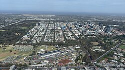 In 2017, the RAH was relocated from the city's East End to a new AU$2.3 billion facility built over former railyards in the West End.[199] The state-of-the-art hospital forms part of a new biomedical precinct called BioMed City that collocates the South Australian Health and Medical Research Institute (SAHMRI), the University of Adelaide Health and Medical Sciences building, the University of South Australia's Health Innovation Building, and the state's Dental Hospital.[200][201] SAHMRI, with additional external funding, has built a $300 million second facility completed in 2024, which was intended to house the Australian Bragg Centre with Australia's first proton therapy unit.[202] Construction is underway for the Women's and Children's Hospital to be relocated to the precinct adjacent the RAH by 2030.[203]