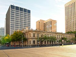 The Dunstan Governments of the 1970s saw something of an Adelaide "cultural revival",[46] establishing a wide array of social reforms. The city became noted for its progressivism as South Australia became the first Australian state or territory to decriminalise homosexuality between consenting adults in 1975.[47] Adelaide became a centre for the arts, building upon the biennial "Adelaide Festival of Arts" that commenced in 1960. The State Bank collapsed in 1991 during an economic recession. The effects lasted until 2004, when Standard & Poor's reinstated South Australia's AAA credit rating.[48] Adelaide's tallest building, completed in 2020, is called the Adelaidean and is located at 11 Frome Street.[49]