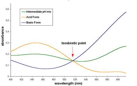 An indicator may be used to obtain quite precise measurements of pH by measuring absorbance quantitatively at two or more wavelengths. The principle can be illustrated by taking the indicator to be a simple acid, HA, which dissociates into H+ and A−.
