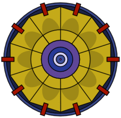 In lectures in 1948 and 1949, von Neumann proposed a kinematic self-reproducing automaton.[285][286] By 1952, he was treating the problem more abstractly. He designed an elaborate 2D cellular automaton that would automatically make a copy of its initial configuration of cells.[287] The Von Neumann universal constructor based on the von Neumann cellular automaton was fleshed out in his posthumous Theory of Self Reproducing Automata.[288] The von Neumann neighborhood, in which each cell in a two-dimensional grid has the four orthogonally adjacent grid cells as neighbors, continues to be used for other cellular automata.[289]