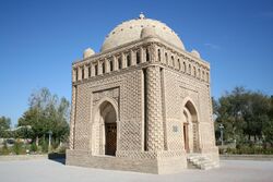 Among the most notable monuments of this period is the Samanid Mausoleum in Bukhara, one of the oldest preserved mausoleums in the Islamic world. It is a small brick structure with a square floor plan covered by a dome that rests on four corner squinches. Its decorative brickwork and its balanced, unified design make it an important monument in the region's architectural history.[17]