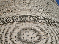Meanwhile, the Qarakhanid dynasty erected many impressive structures in Bukhara and Samarkand (present-day Uzbekistan). Among the surviving religious monuments of Qarakhanid architecture are the great congregational mosque in Bukhara, of which only the Kalyan Minaret (c. 1127) survives (later integrated into the present day Po-i-Kalyan), as well as the nearby Minaret of Vabkent (1141). Several Qarakhanid mausoleums with monumental façades have also survived, such as those in Uzgen (present-day Kyrgyzstan) from the second half of the 12th century.[18](pp354–360) The Qarakhanids themselves were often vassals of other, more powerful states, but their monuments still exhibit some minor local features that distinguish them from other patrons in the region. This style was influenced by earlier Samanid architecture and it continued to be present in the region after the dynasty itself ended in 1212, eventually becoming one of the influences on later Timurid architecture.[13](pp1–2) According to a study by Richard Piran McClary, the most distinctly Qarakhanid features are mainly found in decoration. One feature is the presence of a wide central rib in the semi-domes of portals and squinches (e.g. at the Aisha Bibi Tomb in Taraz). Another is the insertion of terracotta blocks, cut in various shapes, into the gaps between stacks of regular bricks that make up the exterior walls of monuments (e.g. in the Minaret of Vabkent).[13](pp202–249)