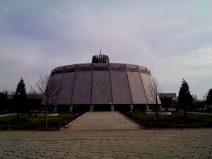Numerous examples of Soviet architecture can be found in Tashkent, the capital city of Uzbekistan. The Tashkent Circus building was built in 1976, and demonstrates the incorporation of local design influence by Soviet architects, along with the use of modern materials seen in Soviet Modernism.[5] Another example found in Tashkent is the 17 storey Hotel Uzbekistan. Built in 1974, the still-functioning hotel features geometric shapes with local influences visible, minimal ornamentation and a flat roof, all features commonly found in Soviet architecture.[43]