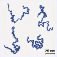 A polymer (/ˈpɒlɪmər/;[4][5]) is a substance or material consisting of very large molecules called macromolecules, composed of many repeating subunits.[6] Due to their broad spectrum of properties,[7] both synthetic and natural polymers play essential and ubiquitous roles in everyday life.[8] Polymers range from familiar synthetic plastics such as polystyrene to natural biopolymers[9] such as DNA and proteins that are fundamental to biological structure and function. Polymers, both natural and synthetic, are created via polymerization of many small molecules, known as monomers. Their consequently large molecular mass, relative to small molecule compounds, produces unique physical properties including toughness, high elasticity, viscoelasticity, and a tendency to form amorphous and semicrystalline structures rather than crystals.
