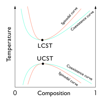 Furthermore, the phase behavior of polymer solutions and mixtures is more complex than that of small molecule mixtures. Whereas most small molecule solutions exhibit only an upper critical solution temperature phase transition (UCST), at which phase separation occurs with cooling, polymer mixtures commonly exhibit a lower critical solution temperature phase transition (LCST), at which phase separation occurs with heating.