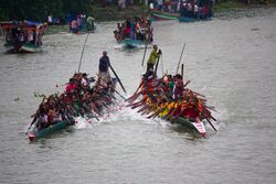 The Nouka Baich is a Bengali boat racing competition which takes place during and after the rainy season when much of the land goes under water. The long canoes were referred to as khel nao (meaning playing boats) and the use of cymbals to accompany the singing was common. Different types of boats are used in different parts of Bengal.[153] Horse racing was patronised most notably by the Dighapatia Rajas in Natore, and their Chalanbeel Horse Races have continued to take place annually for centuries.
