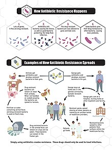 ↑ 35.035.135.2Ferri M, Ranucci E, Romagnoli P, Giaccone V (September 2017). "Antimicrobial resistance: A global emerging threat to public health systems". Critical Reviews in Food Science and Nutrition. 57 (13): 2857–2876. doi:10.1080/10408398.2015.1077192. PMID26464037. S2CID24549694.