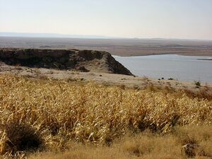 The soil in Mesopotamia is mostly of the sort that is normal in arid climates: a shallow layer on top of the bedrock which is not very fertile. They are generally composed of limestone or gypsum with nutritive elements which enable plant growth, but have only a narrow layer in which the roots can grow. Deeper soil is found in the valleys and culverts of Upper Jazirah. In the more arid areas of Lower Jazirah and Lower Mesopotamia by contrast, the soil is generally sparse and very shallow (solonchak and fluvisol types) and mostly composed of gypsum. They degrade easily and irrigation accelerates both their erosion and their salinisation.[7][8] However, the poverty and fragility of the soils of Southern Mesopotamia are largely compensated for by sheer area of flat land available for irrigation. In the north by contrast, there is better soil, but less land and there is more risk arising from the variation in precipitation.[9]