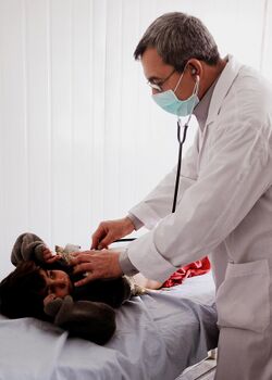 From Handwiki ![]() A clinician listening to the chest of a pediatric patient. | |