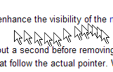 When pointer trails are active and the mouse or stylus is moved, the system waits a moment before removing the pointer image from the old location on the screen. A copy of the pointer persists at every point that the pointer has visited at that moment, resulting in a snake-like trail of pointer icons that follow the actual pointer. When the user stops moving the mouse or removes the stylus from the screen, the trails disappear and the pointer returns to normal.