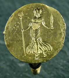 Ring with the engraved representation of a maenad. Ancient Greek artwork, 3rd–2nd century BC. Louvre, Paris.