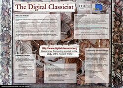 The main website of the Digital Classicist is a gateway containing links to the Digital Classicist wiki and other resources, including listings for seminars and conference panels. The seminar programmes include: abstract, slides (in pdf), audio (in mp3), and, video recordings from 2013.