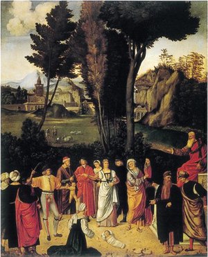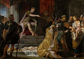 Some scholars assume, as already mentioned, that the story existed independently before it was integrated into its current context. Willem Beuken thinks that the original tale was not about the king's wisdom – the concluding note about Solomon's wisdom is considered secondary – but about a woman who, by listening to her motherly instinct, helped the king to break through the legal impasse. Beuken notes additional biblical stories which share the motif of the woman who influenced the king: Bathsheba, the woman of Tekoa, and Solomon's foreign wives who seduced him into idolatry.[35] Beuken concludes that the true mother exemplifies the biblical character type of the wise woman.[36] He proposes an analysis of the literary structure of the story, according to which the section that notes the compassion of the true mother (verse 26b) constitutes one of the two climaxes of the story, along with the section that announces Solomon's divine wisdom (verse 28b). According to this analysis, the story in its current context gives equal weight to the compassion of the true mother and to the godly wisdom that guided Solomon in the trial.[37]