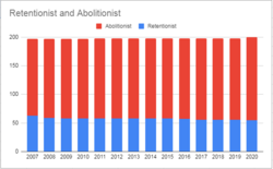The moratorium resolution has been presented for a vote each year since 2007. On December 15, 2022, 125 countries voted in favor of the moratorium, with 37 countries opposing, and 22 abstentions. The countries voting against the moratorium included the United States, People's Republic of China, North Korea, and Iran.[264]