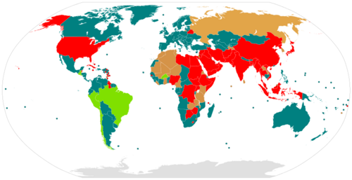 The United Nations introduced a resolution during the General Assembly's 62nd sessions in 2007 calling for a universal ban.[259][260] The approval of a draft resolution by the Assembly's third committee, which deals with human rights issues, voted 99 to 52, with 33 abstentions, in favour of the resolution on 15 November 2007 and was put to a vote in the Assembly on 18 December.[261][262][263]