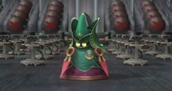 The Ancient Minister's true identity is found to be that of the leading R.O.B. unit, who rebels against Ganondorf to join the fighters when the latter detonates several bombs on its home, the Isle of the Ancients, to create a rift into Subspace large enough to summon the Subspace Army's ultimate weapon – an enormous warship. The three major groups converge and use the Halberd to battle the ship. Although the Halberd is destroyed, all of the characters escape unscathed and Ganondorf and Bowser retreat after Kirby destroys the ship with his Dragoon. After betraying Bowser, Ganondorf discovers that Master Hand was being controlled by the army's actual leader and the embodiment of Subspace, Tabuu, who defeats Ganondorf and Master Hand.