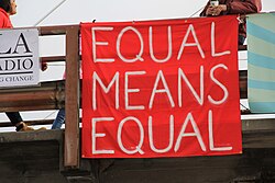 What about those still in the womb? Does equality begin at conception or at a later time? If there is a problem with conception and the fetus has to die to save the mother's life, does this create problems with equality as a Christian conservative might argue? What about after the baby is born? Do children deserve to be treated equally with their parents? In the USA, they don't achieve political equality until they are 18. What about future generations of people yet to be born? Do they deserve to be treated equally as current generations? If so, how are you supposed to calculate that and what does that mean in regards to resource management? If not, why not? What about hypothetical aliens from outer space? Do they deserve the same equal treatment? If so, how is that supposed to be calculated? What about sentient AIs? What about intelligent animals? If we assert that intelligent animals deserve to be treated equally, at what point do we say that an animal is not intelligent enough to deserve to be treated equally?[2][1]