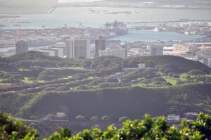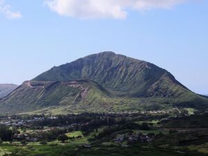 The system takes its name from Honolulu, the capital of Hawaiʻi,[7] as craters are scattered in and around the city.[8] The volcanic system includes well-known landmarks of Honolulu such as Diamond Head, Koko Head, Punchbowl Crater,[3] Rabbit Island, Tantalus,[9] Hanauma Bay (notable as a snorkeling site)[10] and the Mokapu Peninsula,[11] which is the location of Marine Corps Base Hawaiʻi.[12] The United States military has made use of some of the volcanic islands that were formed by the Honolulu Volcanics.[13] The Koko area is designated as the Koko Head Regional Park[14] and Hanauma Bay is also a state park.[15] Parts of this system are among the best known volcanic vents of Hawaiʻi.[16]