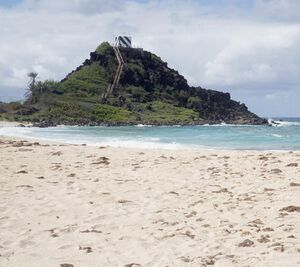 Tuff cone,[69] also known as Rabbit Island,[36] in Waimānalo Bay.[39] | Northwest of Makapuʻu Point,[172] the easternmost tip of Oʻahu.[181] It appears to be formed by two cones, with one crater still preserved.[185] | [ ⚑ ] 21°19′44″N 157°39′25″W / 21.328873289004072°N 157.6570605741068°WTaken from Google Maps | |