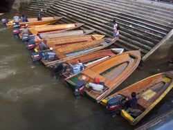 A water taxi service known as 'penambang' is used for transportation between downtown Bandar Seri Begawan and Kampong Ayer. Water taxis are the most common means of negotiating the waterways of Kampong Ayer. They can be hailed from the numerous "docking parts" along the banks of the Brunei River. Fares are negotiable. Regular water taxi and boat services depart for Temburong between 7:45 am and 4 pm daily, and also serve the Malaysian towns of Limbang, Lawas, Sundar and Labuan. A speedboat is used for passengers travelling to Penambang Ferry Service and from Bangar and Limbang.