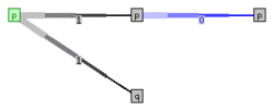 Since the set [math]\displaystyle{ \delta(p,1) }[/math] contains more than one state, [math]\displaystyle{ M }[/math] is nondeterministic.