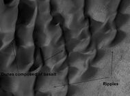 Close-up of dunes on floor of Proctor crater, as seen by CTX camera on Mars Reconnaissance Orbiter. This is an enlargement of part of previous image.