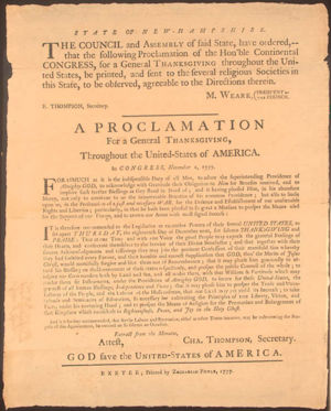 | “ | Whereas it is the duty of all Nations to acknowledge the providence of Almighty God, to obey his will, to be grateful for his benefits, and humbly to implore his protection and favor-- and whereas both Houses of Congress have by their joint Committee requested me to recommend to the People of the United States a day of public thanksgiving and prayer to be observed by acknowledging with grateful hearts the many signal favors of Almighty God especially by affording them an opportunity peaceably to establish a form of government for their safety and happiness. Now therefore I do recommend and assign Thursday the 26th day of November next to be devoted by the People of these States to the service of that great and glorious Being, who is the beneficent Author of all the good that was, that is, or that will be-- That we may then all unite in rendering unto him our sincere and humble thanks--for his kind care and protection of the People of this Country previous to their becoming a Nation--for the signal and manifold mercies, and the favorable interpositions of his Providence which we experienced in the course and conclusion of the late war--for the great degree of tranquility, union, and plenty, which we have since enjoyed--for the peaceable and rational manner, in which we have been enabled to establish constitutions of government for our safety and happiness, and particularly the national One now lately instituted--for the civil and religious liberty with which we are blessed; and the means we have of acquiring and diffusing useful knowledge; and in general for all the great and various favors which he hath been pleased to confer upon us. and also that we may then unite in most humbly offering our prayers and supplications to the great Lord and Ruler of Nations and beseech him to pardon our national and other transgressions-- to enable us all, whether in public or private stations, to perform our several and relative duties properly and punctually--to render our national government a blessing to all the people, by constantly being a Government of wise, just, and constitutional laws, discreetly and faithfully executed and obeyed--to protect and guide all Sovereigns and Nations (especially such as have shewn kindness unto us) and to bless them with good government, peace, and concord--To promote the knowledge and practice of true religion and virtue, and the encrease of science among them and us--and generally to grant unto all Mankind such a degree of temporal prosperity as he alone knows to be best. Given under my hand at the City of New York the third day of October in the year of our Lord 1789. [10] | ” |