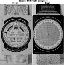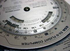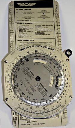 From Handwiki The E6B flight computer is a form of circular slide rule used in aviation. It is an instance of an analog calculating device still being used the 21st century.