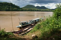 Khon Pi Long is a series of rapids along a 1.6-kilometre section of the Mekong River dividing Chiang Rai and Bokeo Province in Laos. The name of the rapids means 'where the ghost lost its way'.[11] It then turns east into the interior of Laos, flowing first east and then south for some 400 kilometres (250 mi) before meeting the border with Thailand again. Once more, it defines the Laos-Thailand border for some 850 kilometres (530 mi) as it flows first east, passing the capital of Laos, Vientiane, then turns south. A second time, the river leaves the border and flows east into Laos soon passing the city of Pakse. Thereafter, it turns and runs more or less directly south, crossing into Cambodia.