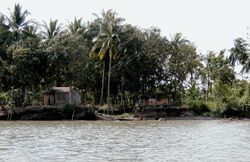In Cambodia, wet rice is the main crop and is grown on the flood plains of the Tonle Sap, Mekong, and Bassac (the Mekong delta distributary known as the Hậu in Vietnam) Rivers.[12] More than half of Cambodia remains covered with mixed evergreen and deciduous broadleaf forest, but forest cover has decreased from 73% in 1973 to 63% in 1993.[12] Here, the river landscape is flat. Small changes in water level determine the direction of water movement, including the large-scale reversal of flow into and out of the Tonle Sap basin from the Mekong River.[12]