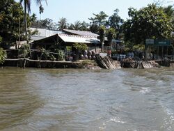 Mekong is originally called Mae Nam Khong from a contracted form of Tai shortened to Mae Khong.[4] In Thai and Lao, Mae Nam ("Mother of Water[s]") is used for large rivers and Khong is the proper name referred to as "River Khong". However, Khong is an archaic word meaning "river", loaned from Austroasiatic languages, such as Vietnamese sông (from *krong) and Mon kruŋ "river", which led to Chinese 江 whose Old Chinese pronunciation has been reconstructed as /*kˤroŋ/[5] and which long served as the proper name of the Yangtze before becoming a generic word for major rivers. To the early European traders, the Mekong River was also known as Mekon River, May-Kiang River and Cambodia River. [6] [7][8] [9][10]