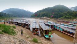 Narrower and more turbulent sections of water in the upstream parts of the Mekong River, coupled with large annual water level variations continue to present a challenge to navigation. The seasonal variations in water level directly affect trade in this section of the river. Volumes of trade being shipped decrease by more than 50%, primarily due to the reduced draughts available during the low water season (June–January).[3] Despite these difficulties, the Mekong River is already an important link in the transit chain between Kunming and Bangkok with about 300,000 tonnes of goods shipped via this route each year.[3] The volume of this trade is expected to increase by 8–11% per year. Port infrastructure is being expanded to accommodate the expected growth in traffic, with new facilities planned for Chiang Saen port.[3]