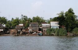 It is estimated that 40 million rural people, more than two-thirds of the rural population in the lower Mekong basin, are engaged in the wild capture fishery.[3] Fisheries contribute significantly to a diversified livelihood strategy for many people, particularly the poor, who are highly dependent on the river and its resources for their livelihoods.[43][44][48] They provide a principal form of income for numerous people and act as a safety net and coping strategy in times of poor agricultural harvests or other difficulties.[43][44][48] In Laos alone, 71% of rural households (2.9 million people) rely on fisheries for either subsistence or additional cash income. Around the Tonle Sap Lake in Cambodia, more than 1.2 million people live in fishing communes and depend almost entirely on fishing for their livelihoods.[3]