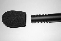 Two recordings being made—a blimp is being used on the left. An open-cell foam windscreen is being used on the right.