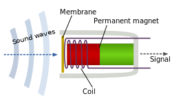 The dynamic microphone (also known as the moving-coil microphone) works via electromagnetic induction. They are robust, relatively inexpensive and resistant to moisture. This, coupled with their potentially high gain before feedback, makes them ideal for on-stage use.