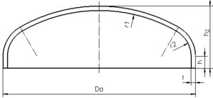 This is a torispherical head. The dish has a radius that equals the diameter of the cylinder it is attached to ([math]\displaystyle{ r_1=Do }[/math]). The knuckle has a radius that equals a tenth of the diameter of the cylinder ([math]\displaystyle{ r_2=0.1\times Do }[/math]), hence its alternative designation "decimal head".
