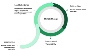 The growing physical risks to many coastal cities stem from a combination of factors relating to rapid urbanization, climate change, and land subsidence. Many of these natural hazards are largely anthropogenic in origin.[2] In many cases, the fundamental aspects that lead to sinking cities become tightly interwoven, and over time, are increasingly difficult to resolve.