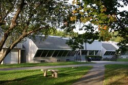 Opened on April 26, 2017, the R.W. Kern Center is the 17th Living Building in the world certified under the advanced green-building standard, the Living Building Challenge. The building cost $10.4 million made possible by private donations. It operates net-zero energy, water, and waste. The building is powered by solar panels on its roof, supplies its own drinking water by harvesting rainwater from its roof, manages its wastewater on site, and contains composting toilets. The Kern Center was built using materials from local sources without the use of any toxic "red list" materials; even materials such as duct tape were chosen carefully to comply with strict environmental standards.[54] Currently, the Kern Center houses Admissions and financial aid offices as well as classrooms, student lounges, and a coffee shop. President Jonathan Lash stated that "[w]ith this building we have sought to reflect our values, in the inclusive design process, the design and materials, our construction practices, and our reporting about the building... [w]hy are buildings constructed any other way? In every way, the Kern Center was built to learn and teach."[55][56]