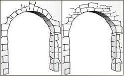Comparison of a generic "true" arch (left) and a corbel arch (right)
