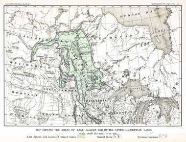 About 18,000 years ago, the Laurentide Ice Sheet began to melt and retreat. As the Mankato ice shrank meltwaters became ponded in several places along the margin of the glacier. Some of these lakes covered several hundred thousand square miles and have left a definite imprint on the topography. All of them have since been drained by natural force or have been shrunk considerably from their original size.