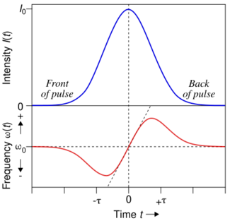 Consider the picture on the right. On the left there is a standard Gaussian pulse, that's the envelope of the field oscillating at a defined frequency. We assume that the frequency remains perfectly constant during the pulse.