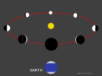The orbit of Venus is 224.7 Earth days (7.4 avg. Earth months [30.4 days]). The phases of Venus result from the planet's orbit around the Sun inside the Earth's orbit giving the telescopic observer a sequence of progressive lighting similar in appearance to the Moon's phases. It presents a full image when it is on the opposite side of the Sun. It is a gibbous phase when it approaches or leaves the opposite side of the Sun. It shows a quarter phase when it is at its maximum elongation from the Sun. Venus presents a thin crescent in telescopic views as it comes around to the near side between the Earth and the Sun and presents its new phase when it is between the Earth and the Sun. Since the planet has an atmosphere it can be seen at new in a telescope by the halo of light refracted around the planet. The full cycle from new to full to new again takes 584 days (the time it takes Venus to overtake the Earth in its orbit). Venus (like the Moon) has 4 primary phases of 146 days each.