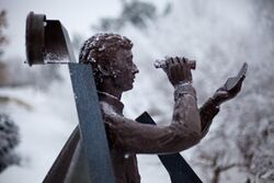 The chapel and surrounding grounds are adorned by the sculptures of Paul T. Granlund, the former artist-in-residence at Gustavus Adolphus College.