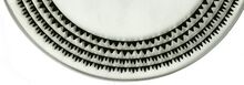 The polycarbonate disc cools quickly and is promptly removed from the machine, before forming another disc. The disc is then metallized, covered with a thin reflective layer of aluminum. The aluminum fills the space once occupied by the negative.