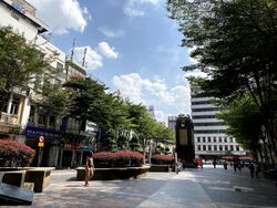 Kuala Lumpur plays host to many cultural festivals such as the Thaipusam procession at the Sri Mahamariamman Temple. Every year during the Thaipusam celebration, a silver chariot carrying the statue of Lord Muruga together with his consort Valli and Teivayanni would be paraded through the city beginning at the temple all the way to Batu Caves in the neighboring Gombak, Selangor.[112] The primary entertainment and shopping district of the city is mainly centred in the Golden Triangle encompassing Jalan P. Ramlee, Jalan Sultan Ismail, Jalan Bukit Bintang, Ampang Road and Bintang Walk.[113]