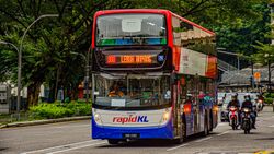 Rapid Bus began the first phase of the revamp of its bus network in January 2006, introducing 15 City Shuttle bus routes which serve major areas in the Central Business District (CBD) of Kuala Lumpur. In 2008, Rapid Bus operated 167 routes with 1,400 buses covering 980 residential areas with a ridership of about 400,000 per day.[196] The buses run between four hubs at the edge of the central business district, namely KL Sentral, Titiwangsa, Kuala Lumpur City Centre, Maluri, and Medan Pasar in the city centre. These bus hubs also serve as rail interchanges, with the exception of Medan Pasar, although it is at a walking distance from Masjid Jamek LRT station. On June 18, 2020, Rapid Bus released a new feature: real-time location of bus in Google Maps, via collaboration with Google Transit.[197][198][199][200]